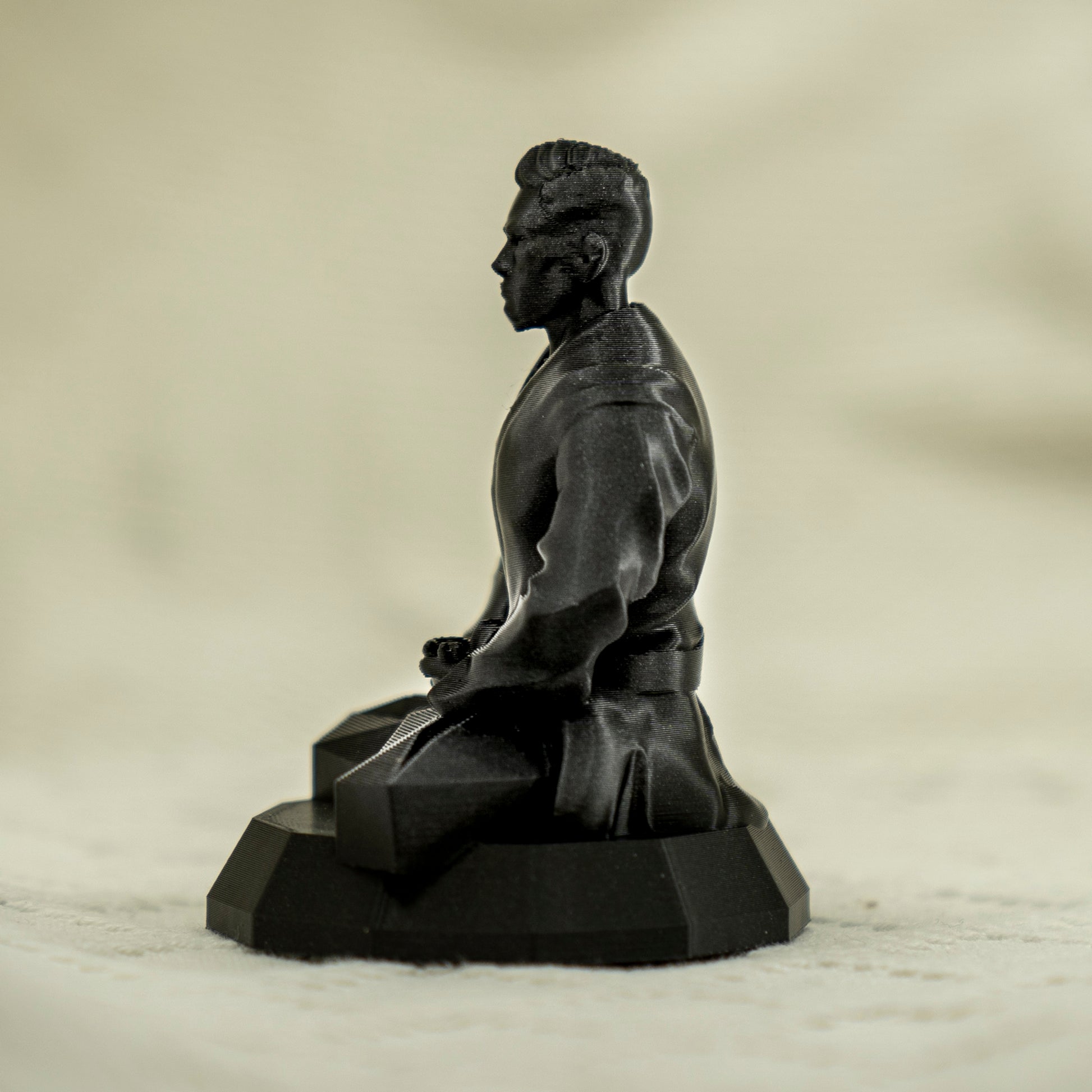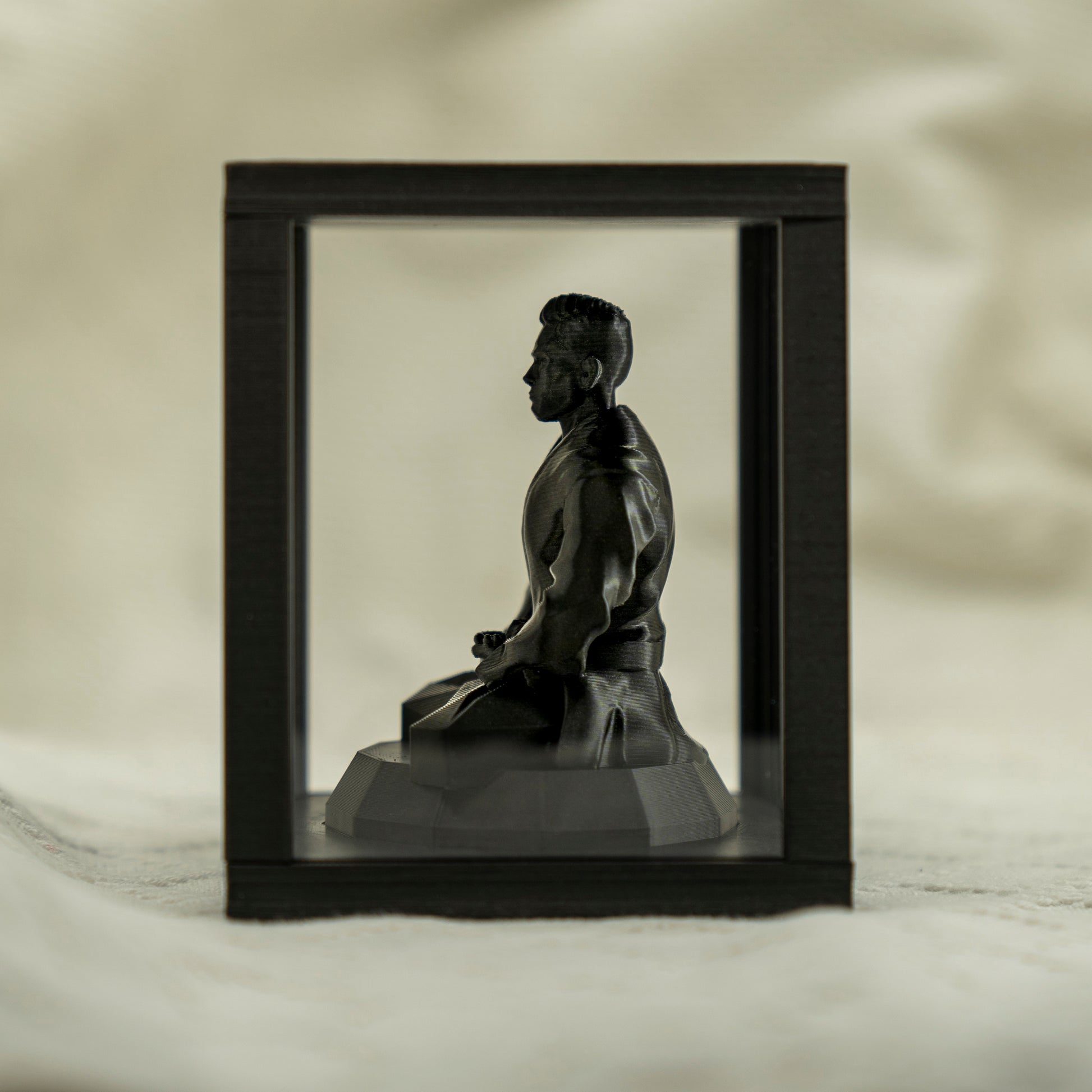 The Pawn is transformed into a disciplined, meditative figure, symbolizing the path of a dedicated BJJ student. Often viewed as expendable in chess, these Pawns carry the potential for transformation, much like the journey of a BJJ white belt advancing to black belt. The Pawns’ seated, meditative posture represents the mental fortitude and patience required of a BJJ practitioner, who must cultivate inner calm to navigate the demands of training and combat. In BJJ, humility and resilience are essential, as even the most junior student can evolve into a formidable opponent through dedication. Each Pawn embodies the philosophy that BJJ begins with control over oneself; mastery over the mind is the foundation for mastery over any opponent. The Pawn, seemingly ordinary, reminds us that in BJJ, even the simplest positions hold immense potential, and that those who pursue the art with patience, respect, and discipline will ultimately transform.
